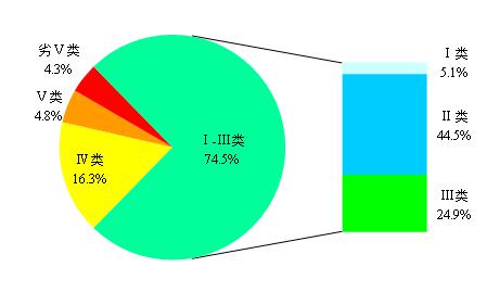 图2 2019年1-6月全国地表水水质类别比例
