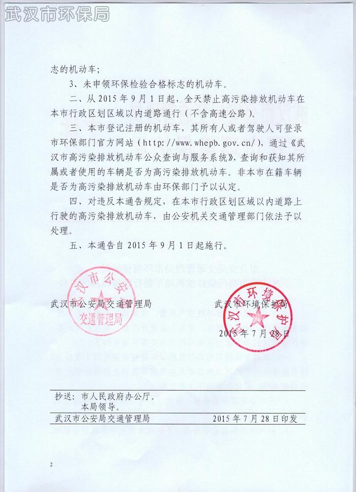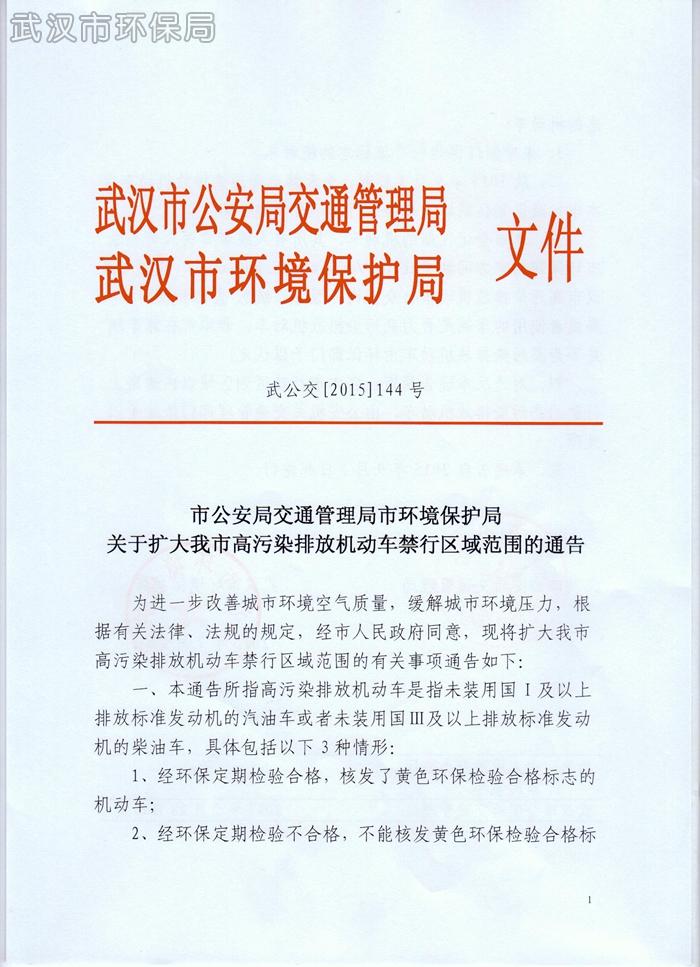 武公交〔2015〕144号 市公安局交通管理局市环境保护局 关于扩大我市高污染排放机动车禁行区域范围的通告