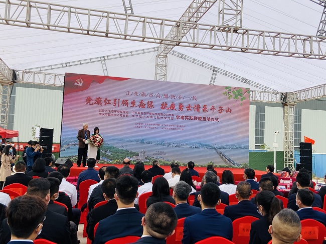 让党旗高高飘扬在一线,市生态环境局党员干部在医废处置现场开展联合党建活动。